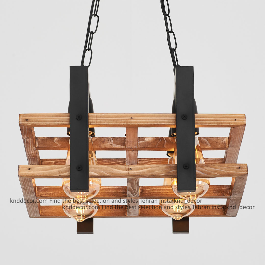 آویز ترکیب چوب و فلز شعله معمولی 4 شعله ابعاد 42 در 42 مدل G42 کد AV56