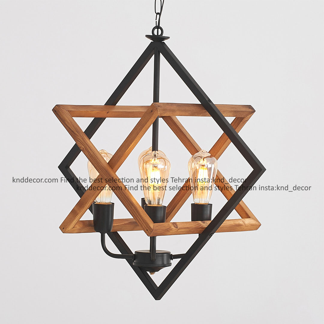 آویز ترکیب چوب و فلز شعله معمولی 4 شعله ابعاد 40 در 40 مدل G24 کد AV58