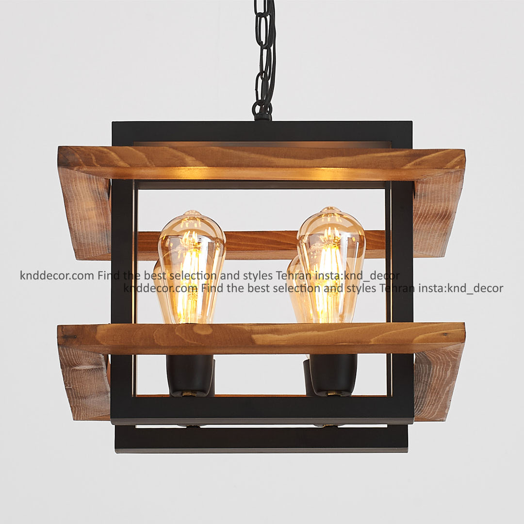 آویز ترکیب چوب و فلز شعله معمولی 4 شعله ابعاد 38در 38 مدل G43 کد AV53