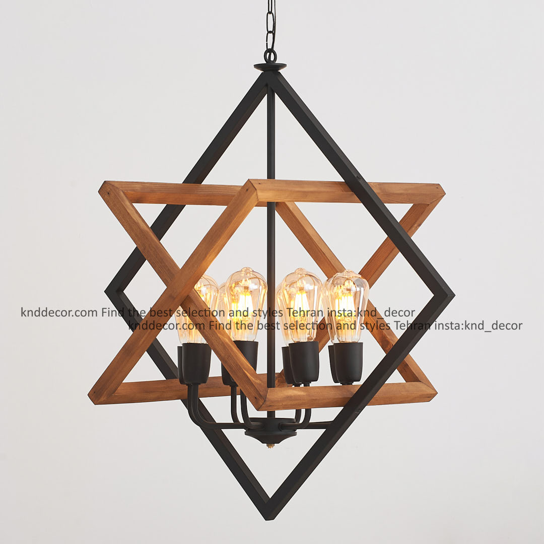آویز ترکیب چوب و فلز شعله معمولی 8 شعله ابعاد 50 در 50 مدل G18 کد AV59