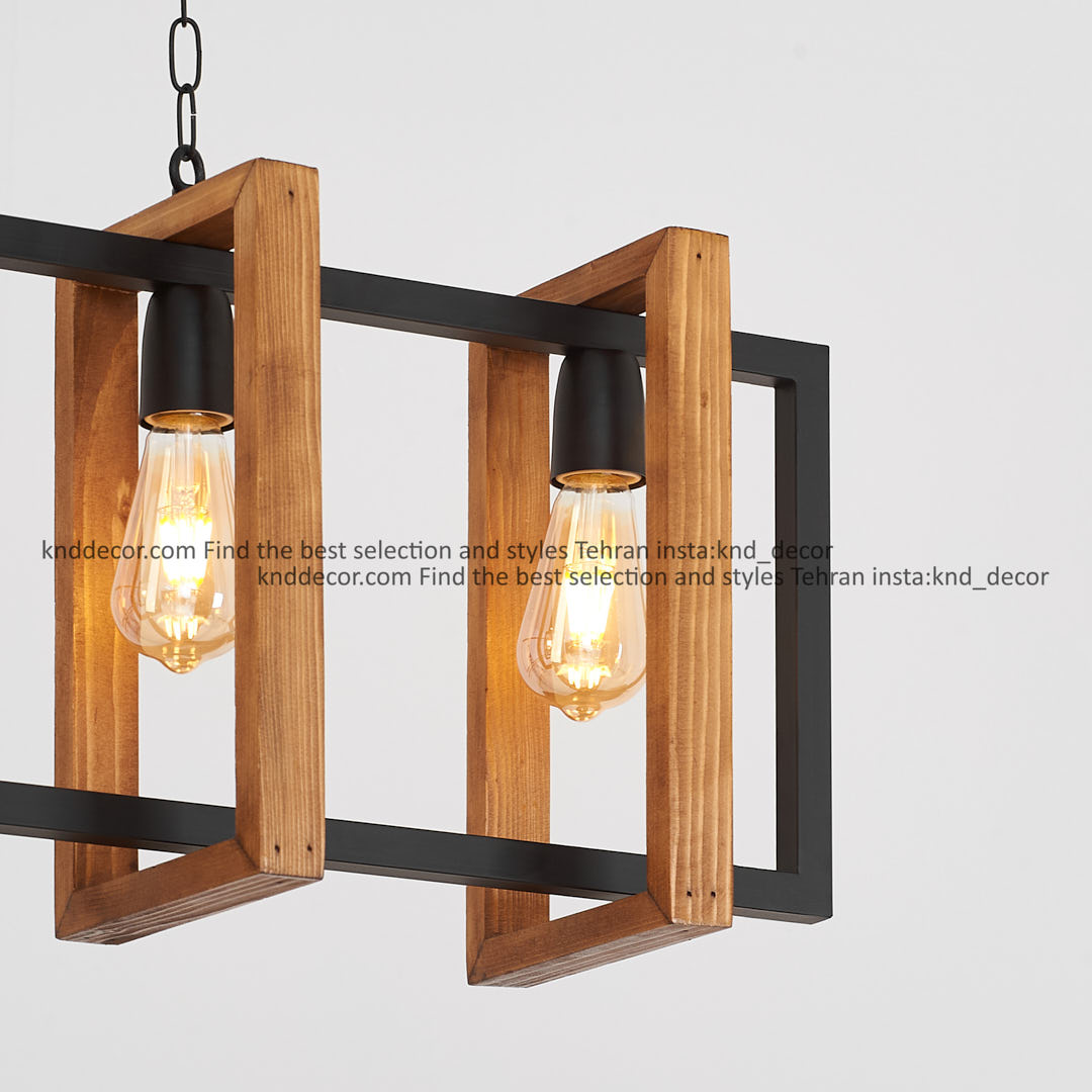 آویز خطی ترکیب چوب و فلز شعله معمولی 4 شعله طول 90 سانت مدل L36 کد AV55