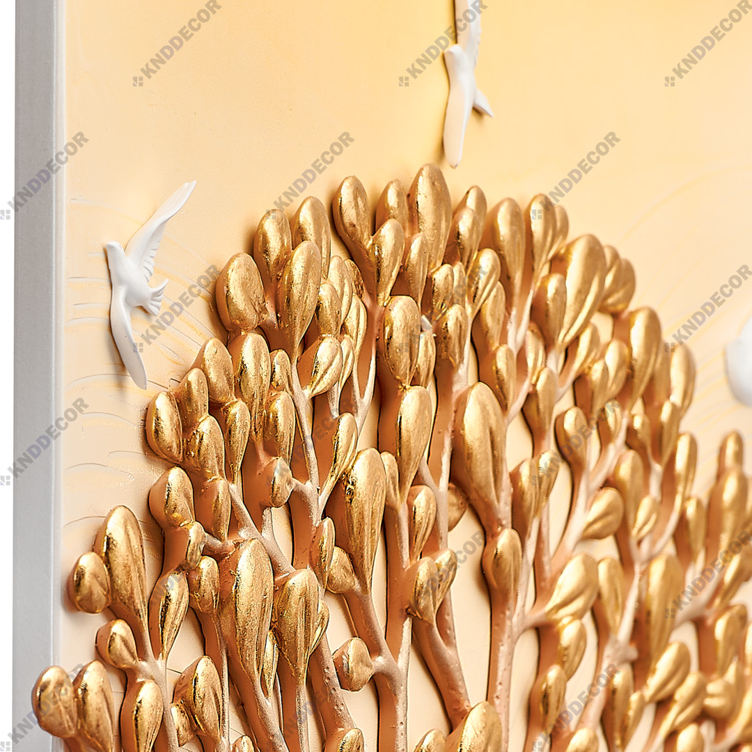 تابلو دکوراتیو مدرن رزین 80*120 مدل درخت شاه بلوط یک تکه طلایی DE8121GL کدFR116