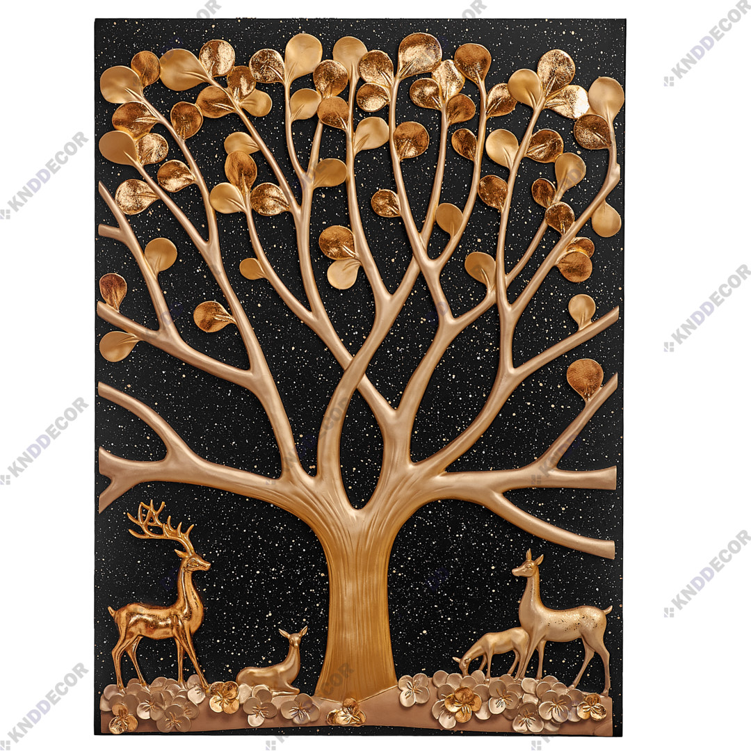 تابلو دکوراتیو مدرن رزین 80*60 سه تیکه مدل درخت پالونیا و گوزن زمینه مشکی DE8380GB کدFR104