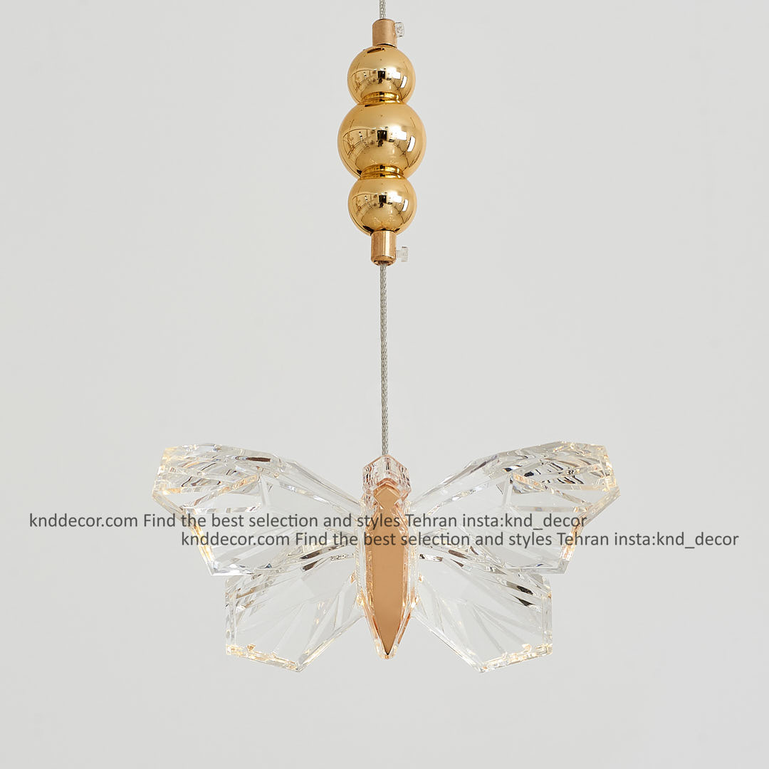 لوستر مدرن طلایی آویز پروانه 5 شعله کد LO1024