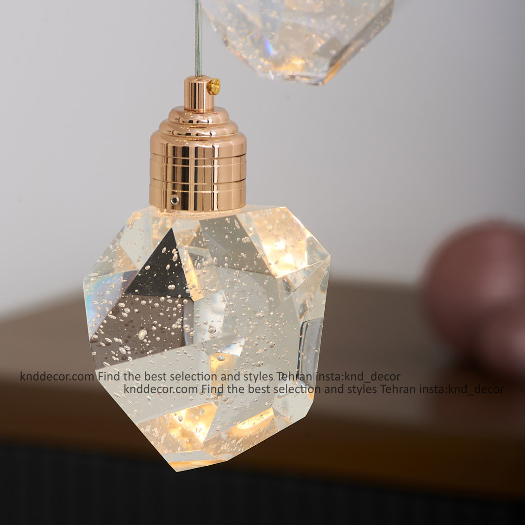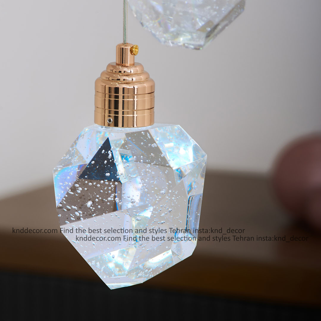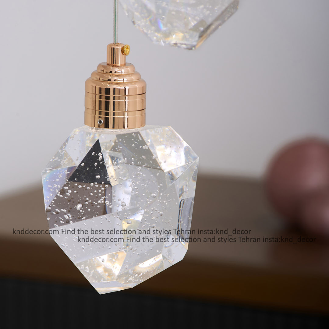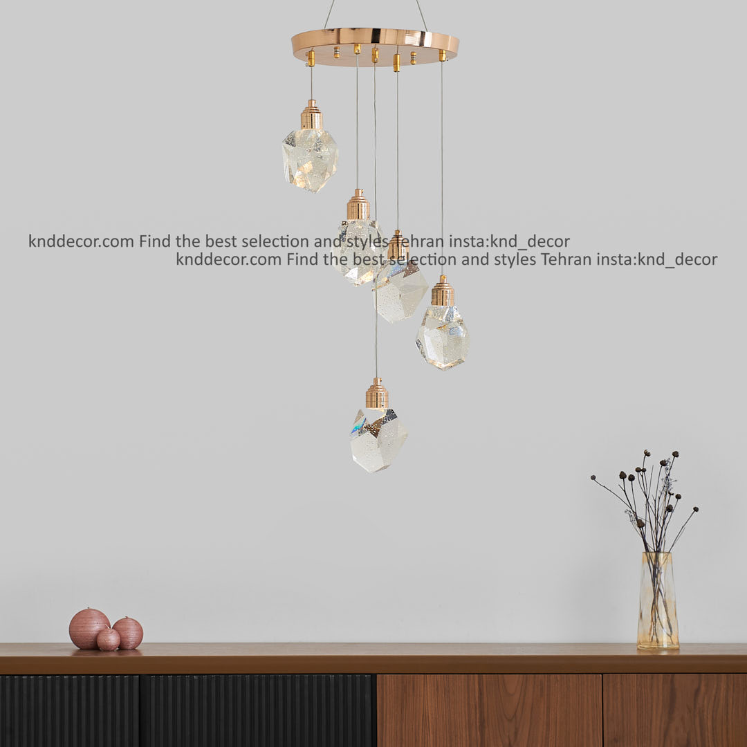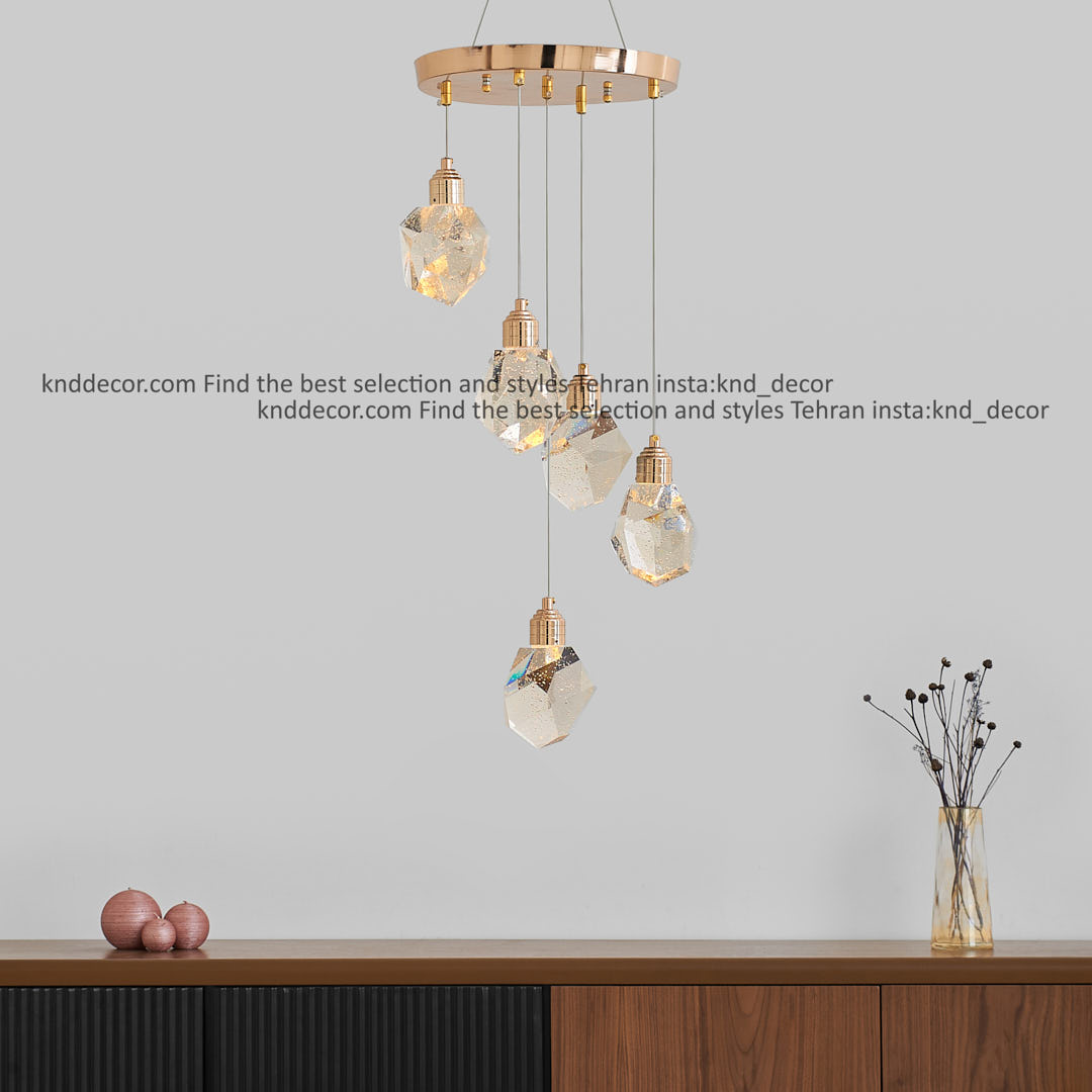 لوستر مدرن طلایی 5 شاخه مدل آویز چند وجهی کد LO921