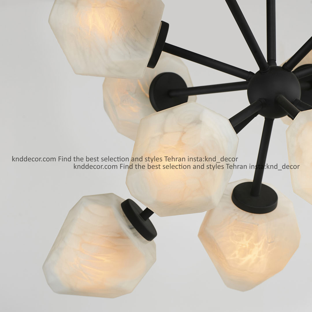 لوستر مدرن مشکی 12 شاخه مدل 1072 با حباب 110 سفید کد LO657