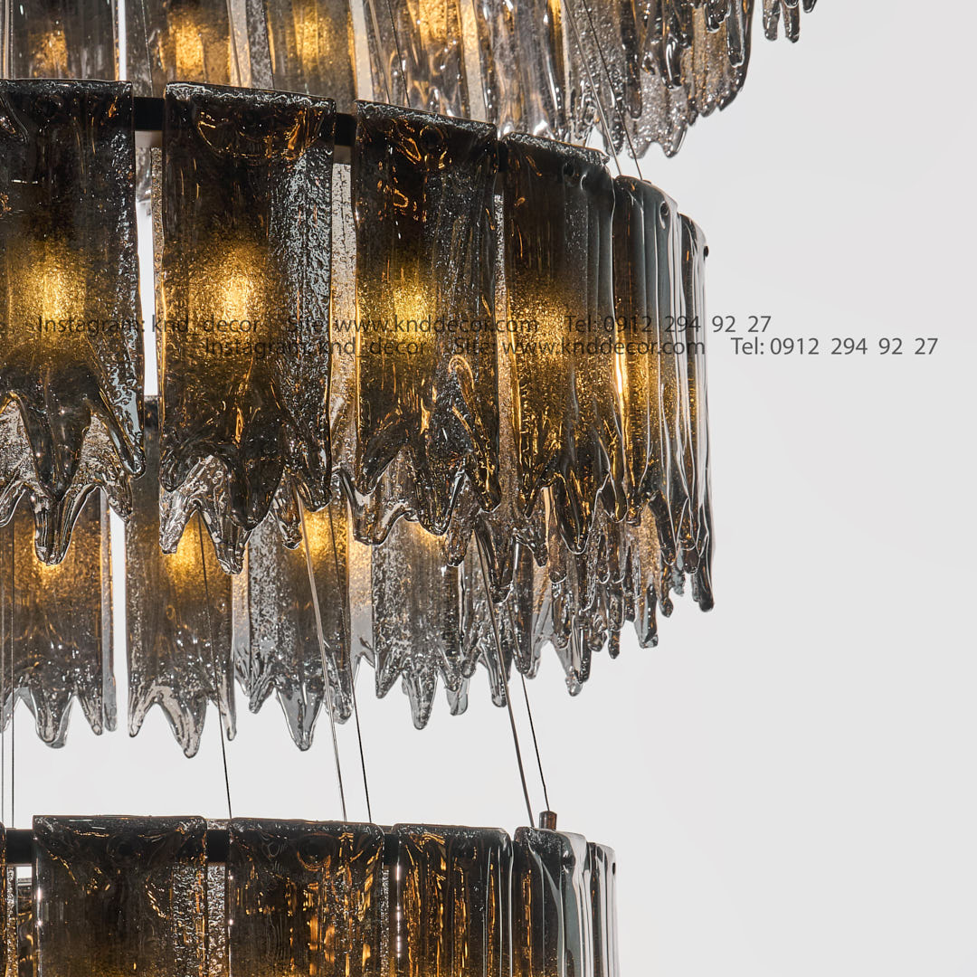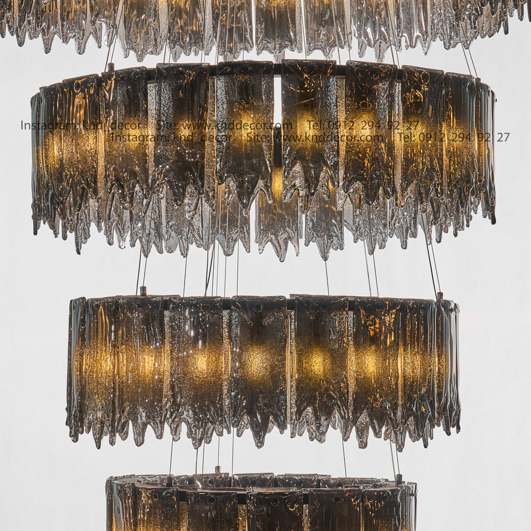 لوستر مدرن ویدی مشکی 5 طبقه (28+24+20+16+12) شعله 2082 با کریستال دودی
