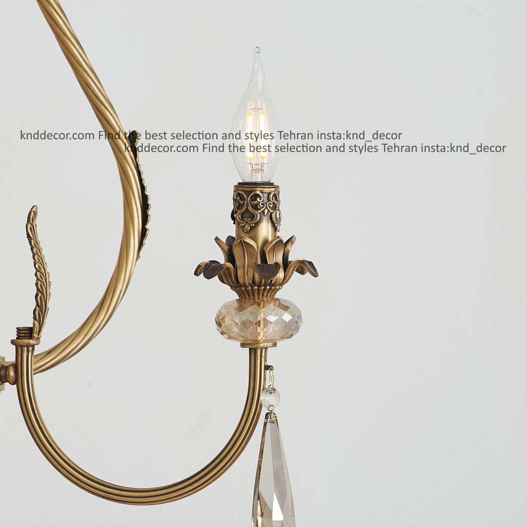 لوستر نئوکلاسیک آنتیک کریستالی 3+1 شاخه مدل فانوسی کریستال