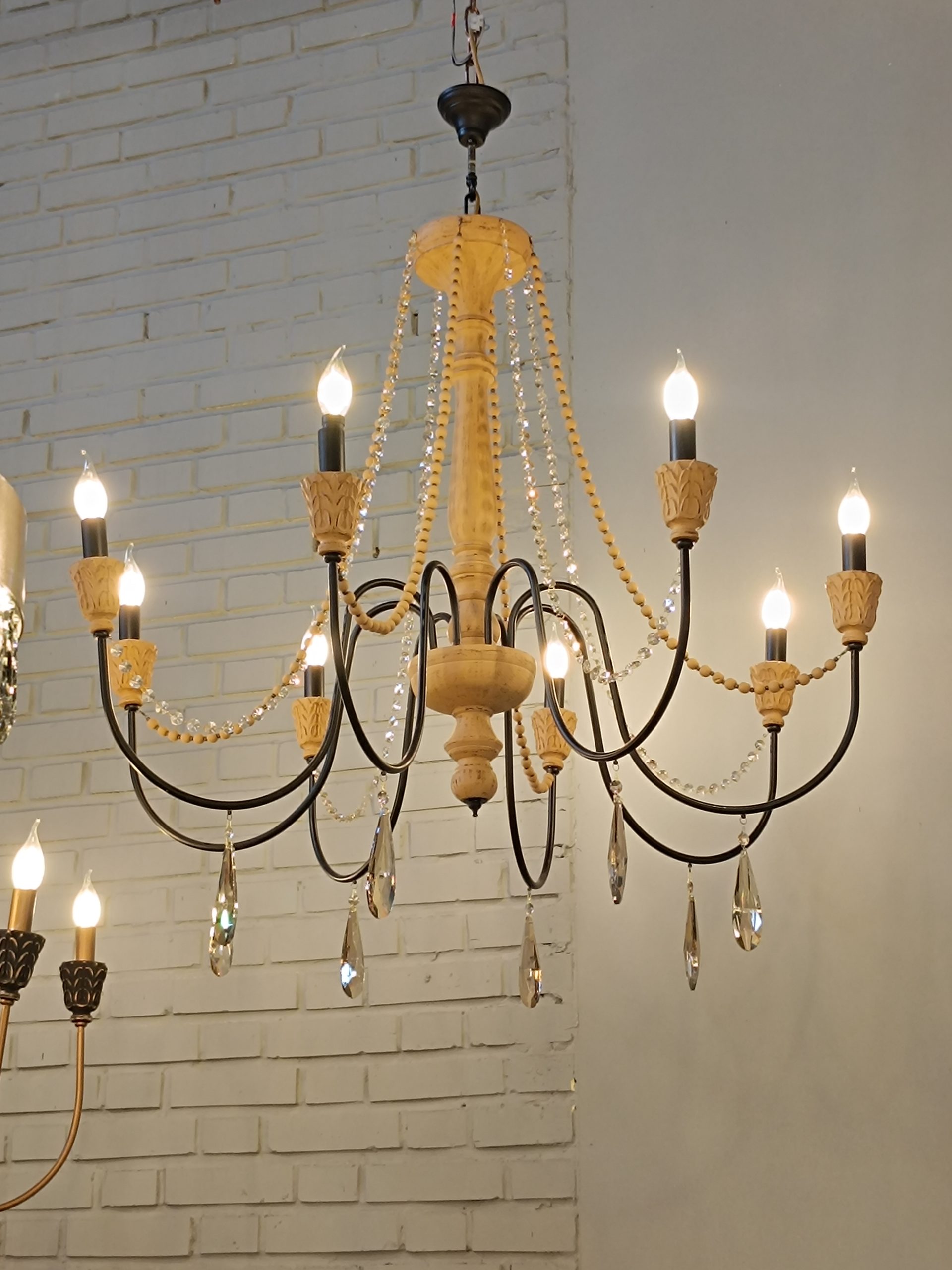 لوستر نئوکلاسیک چوبی حنا 8 شاخه با آویز بادامی