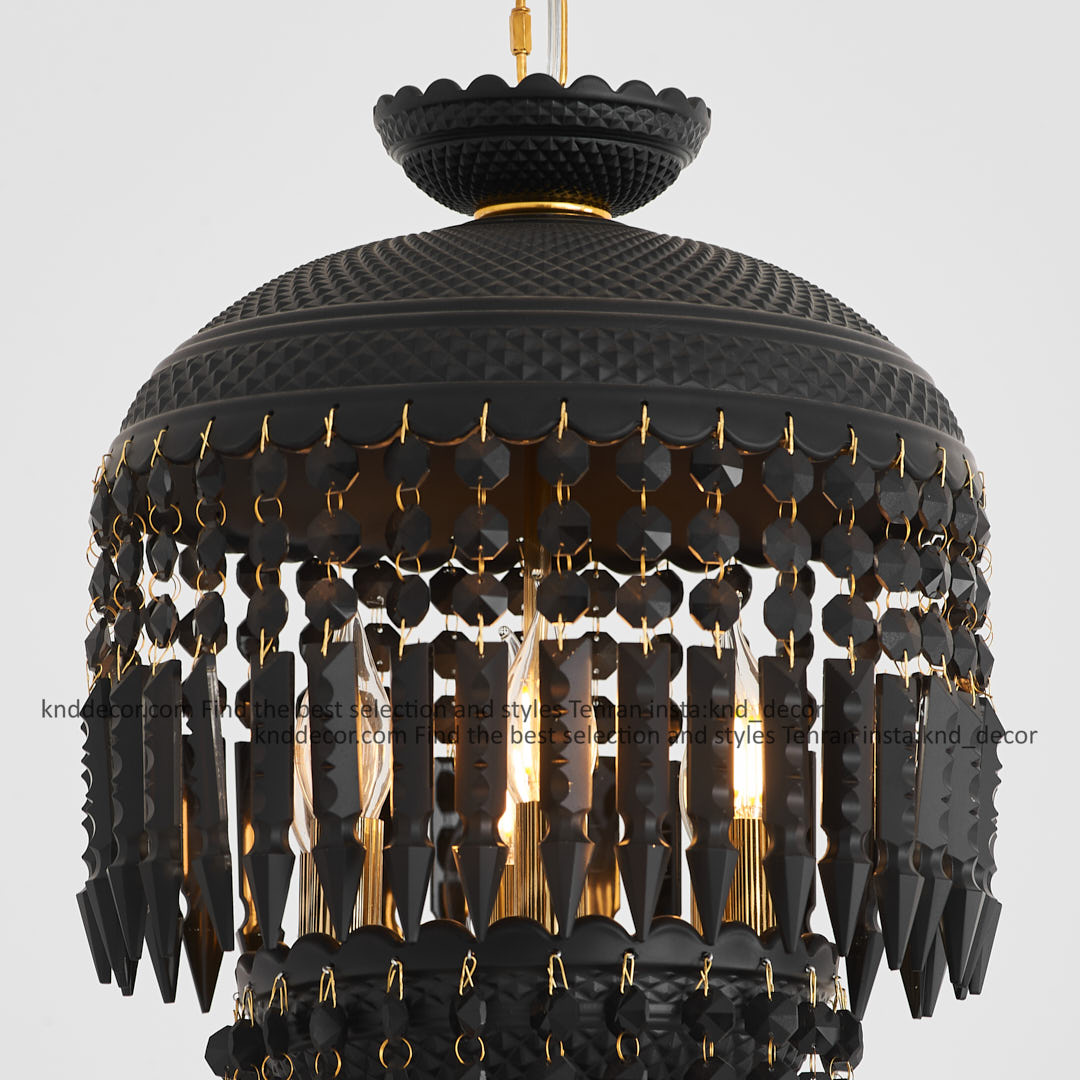 لوستر نئوکلاسیک کریستالی آویز بزرگ مشکی مات کاسه 30 سانت یراق طلایی