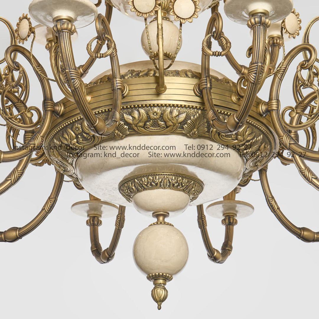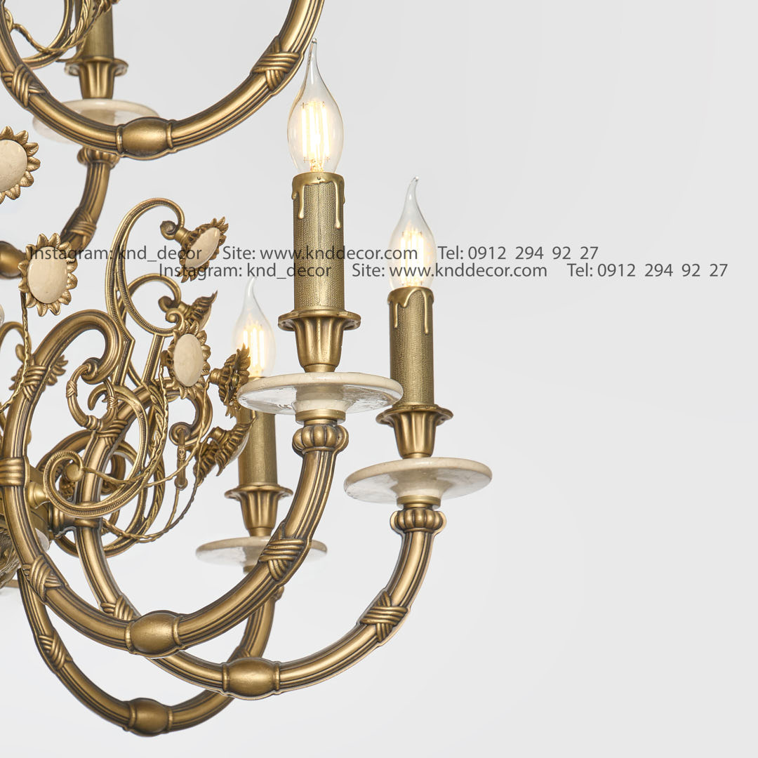 لوستر کلاسیک 15 شاخه آنتیک آفتابگردان سنگ کرم آنتیک آویز سنگ