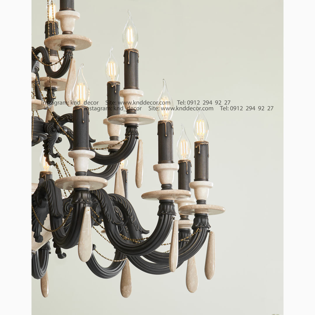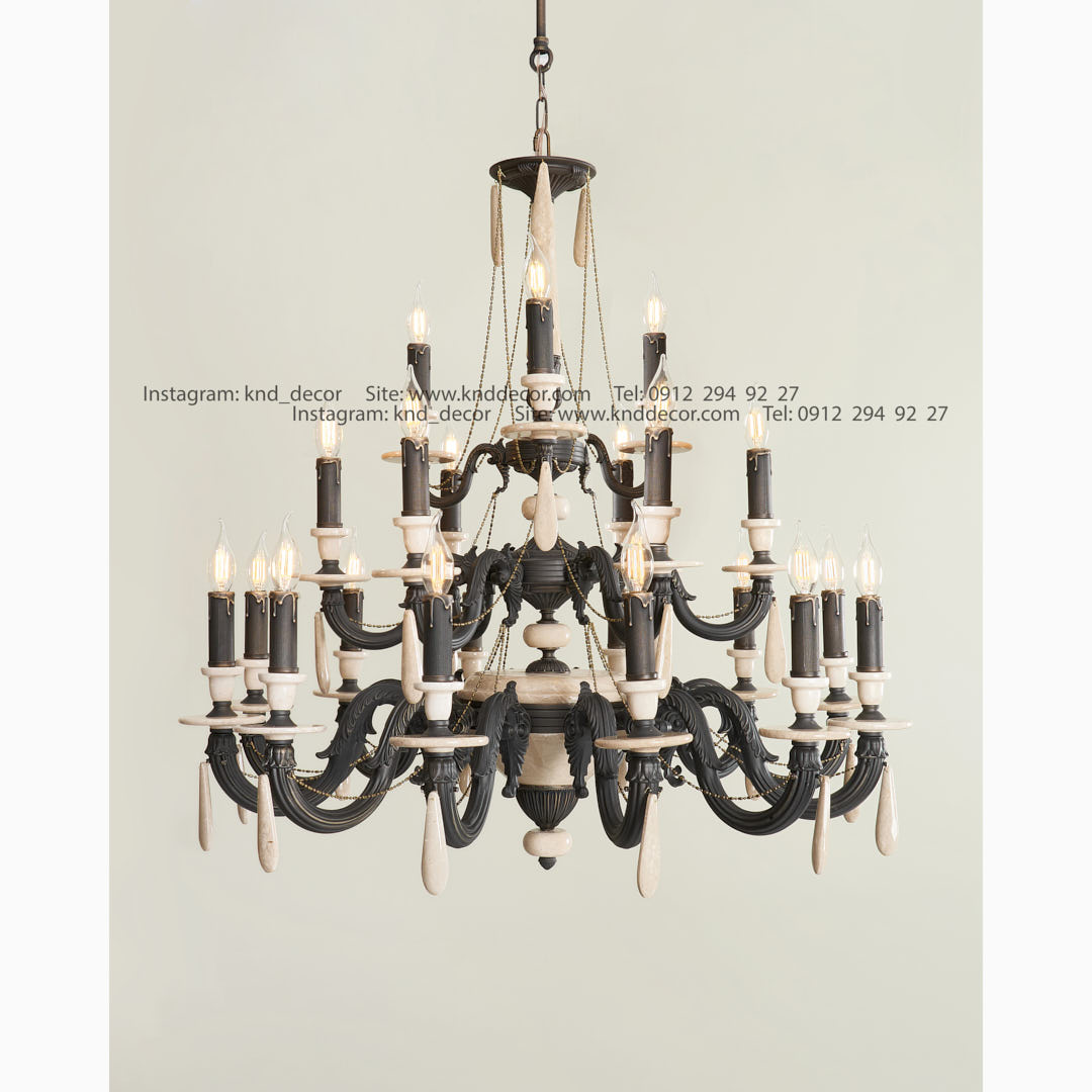 لوستر کلاسیک 21 شاخه آنتیک رومی دایانا سنگ کرم