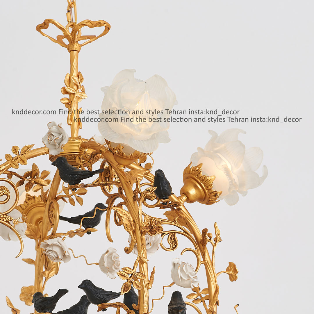 لوستر کلاسیک 8 شعله طلامات طرح گنجشک