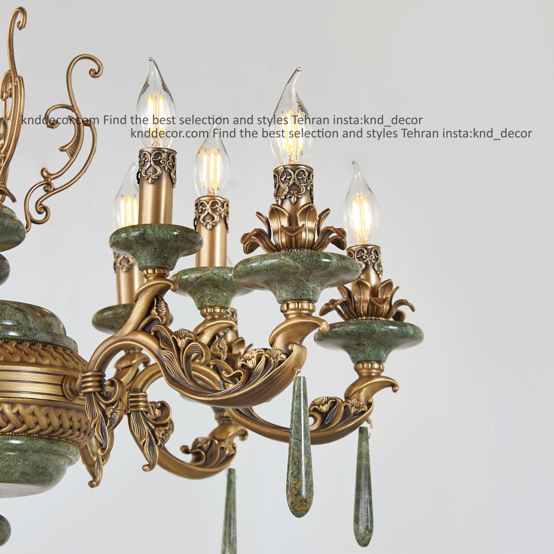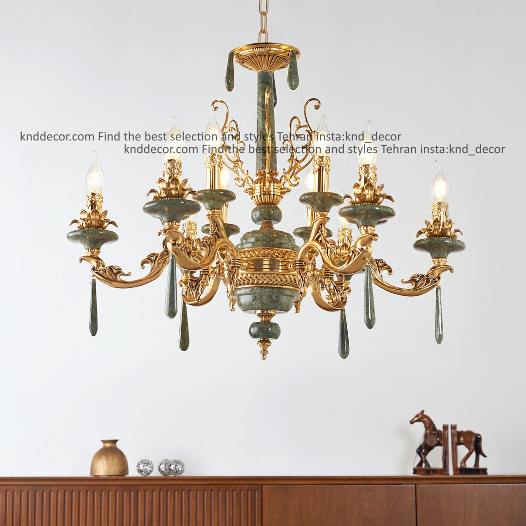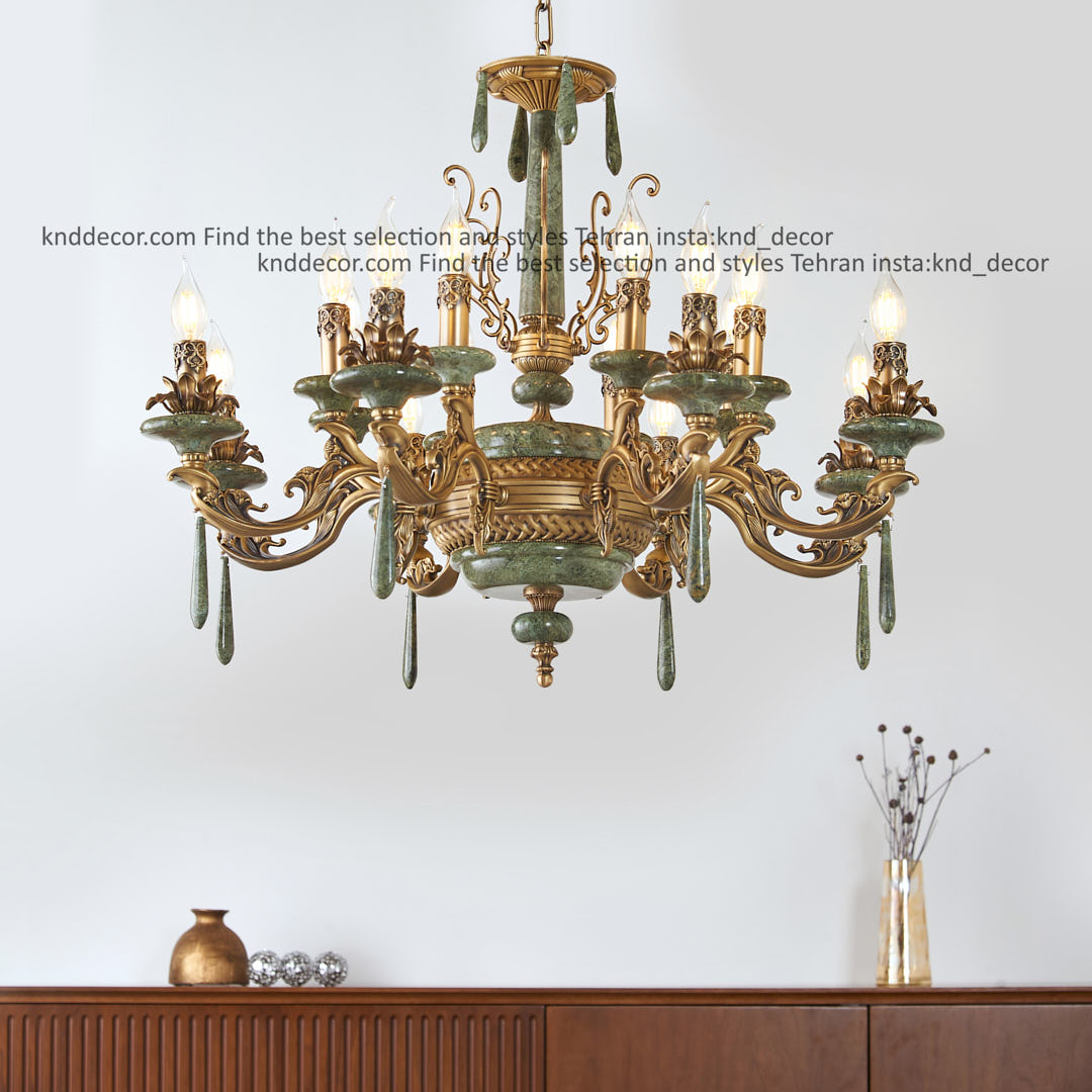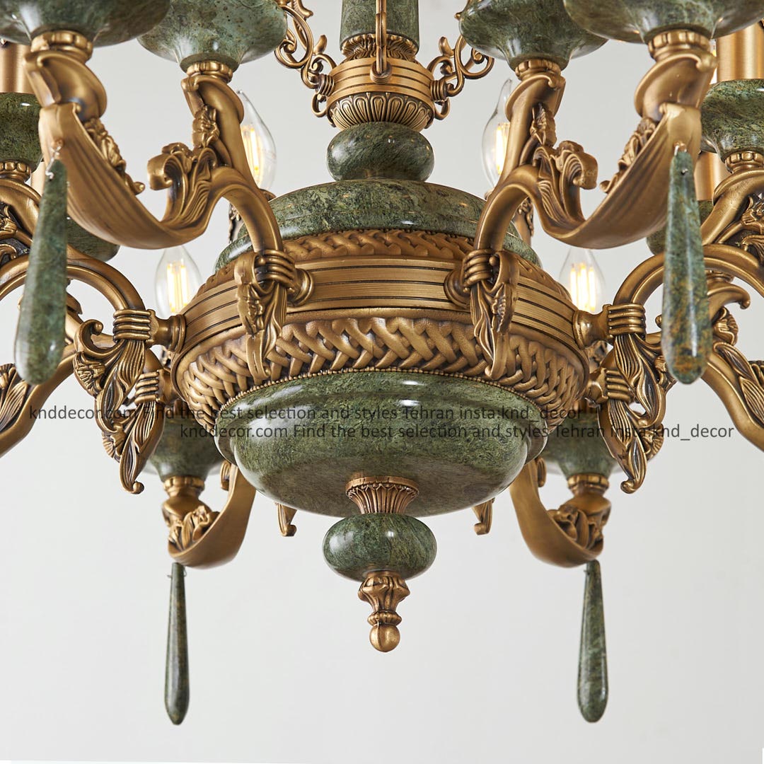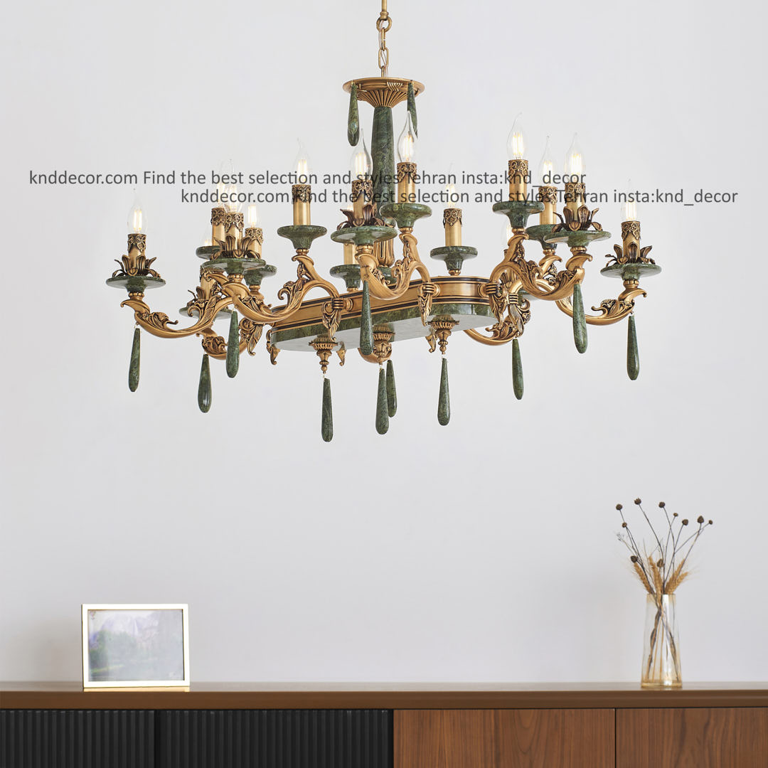 • لوستر آوا پتینه با آویز سنگ - سنگ سبز سنگ سبز