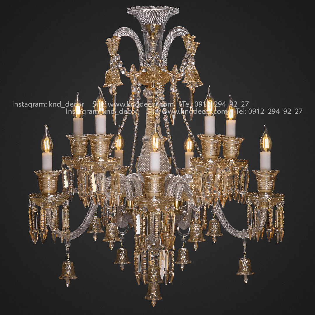 لوستر باكارات گريد 1 غلاف شيشه و صليبي شاخه 30 سانت كاسه 21 شفاف عسلي 10