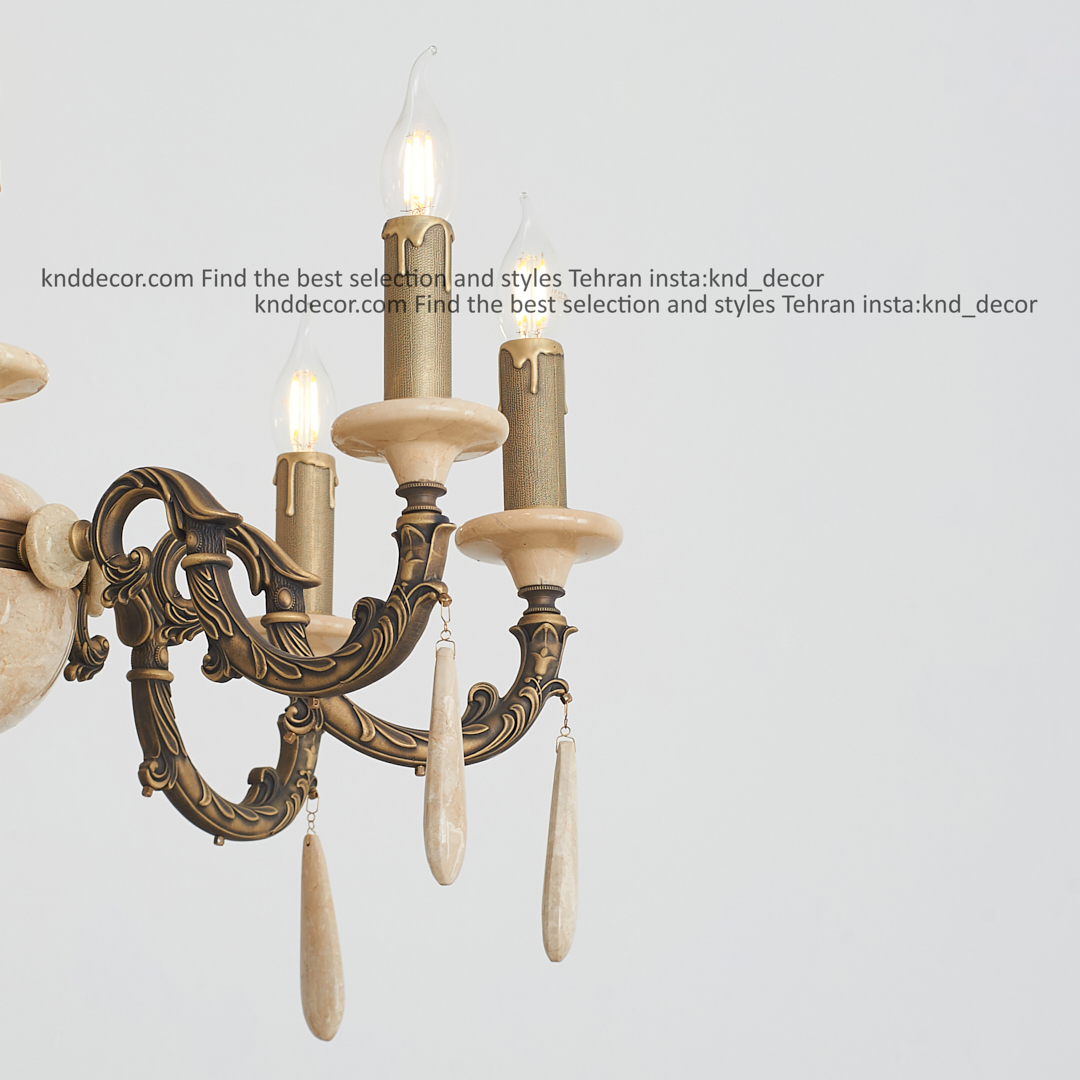لوستر کلاسیک آنتیک سنگ کرم مدل نازنین آویز سنگ