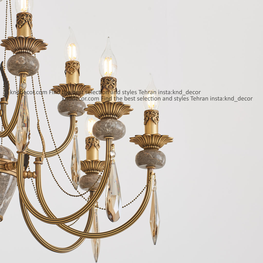 لوستر ليانا يراق آلومينيوم آنتيك سنگ نوك مدادي آويز بادامي 12