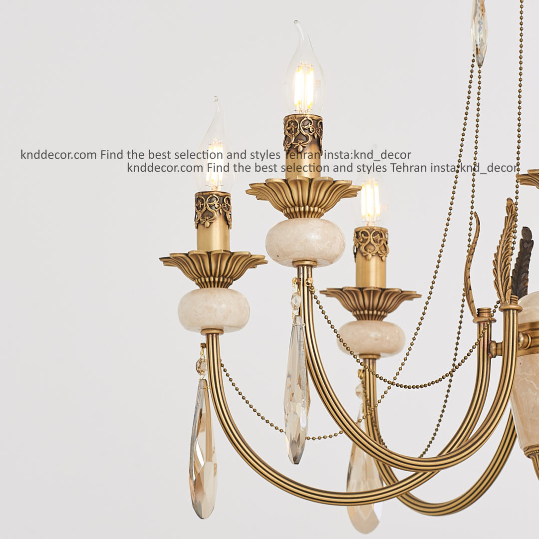 لوستر ليانا يراق آلومينيوم آنتيك سنگ كرم آويز بادامي 8