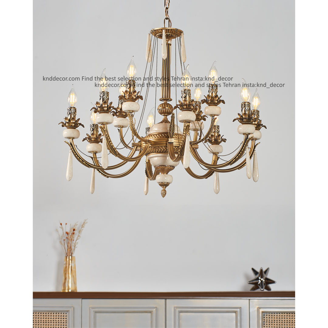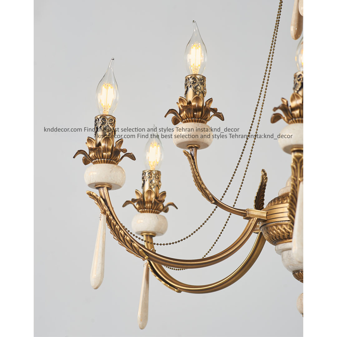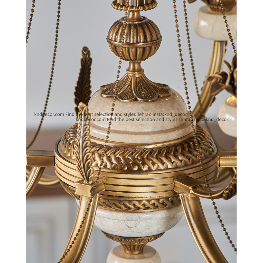 لوستر مارال تك و دوبل آنتيك سنگ كرم آويز سنگ 8 ستون برنجی