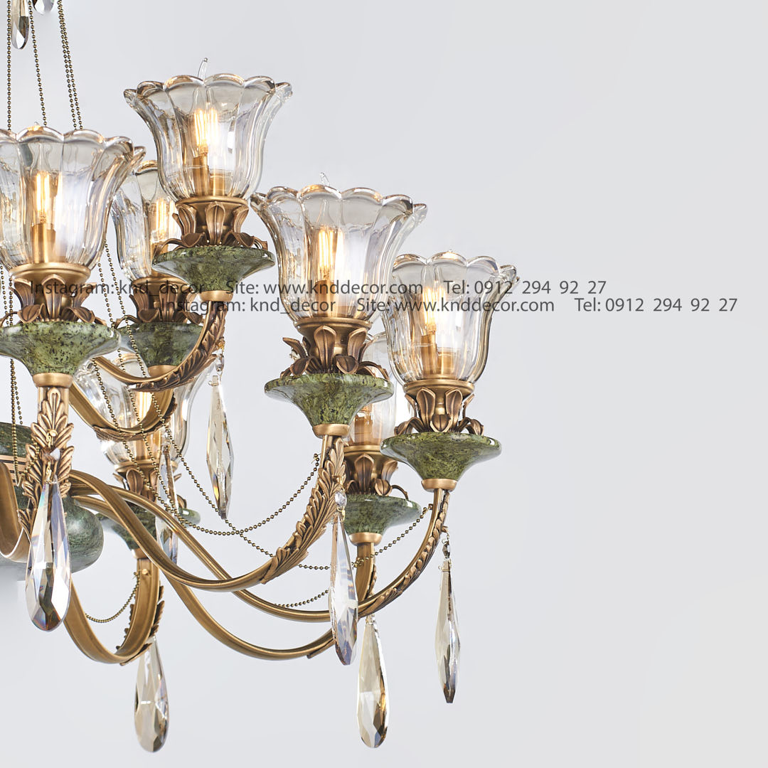لوستر رويال آنتيك سنگ سبز زنبق آفتاب با لاله آويز بادامي 15